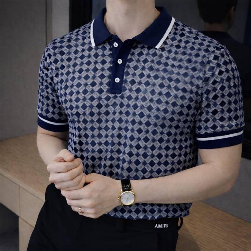 Amir i Imported knitted Monogram Super Premium Navy Collar Neck Polo T-shirt F3480-NY