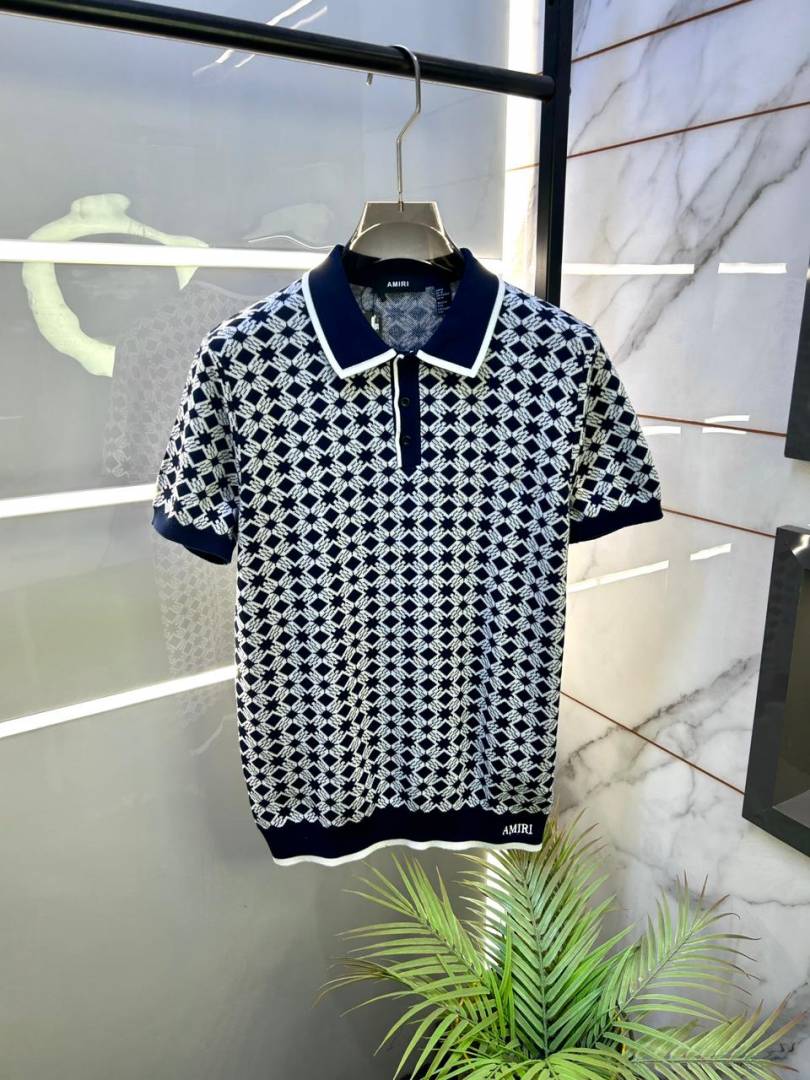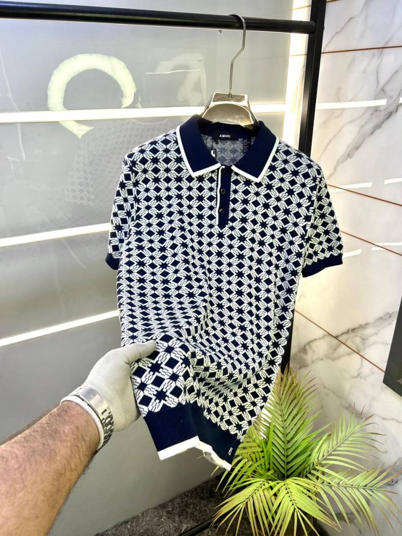 Amir i Imported knitted Monogram Blue Super Premium Collar Neck Polo T-shirt F3480-BU