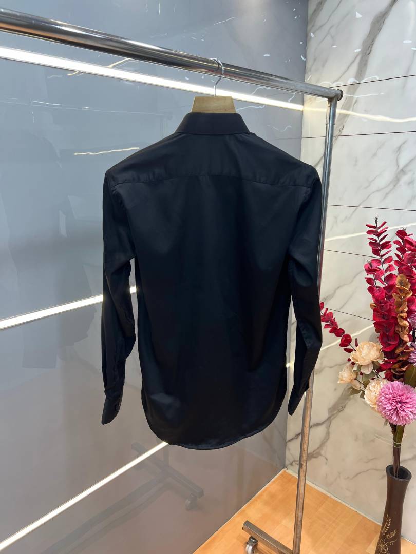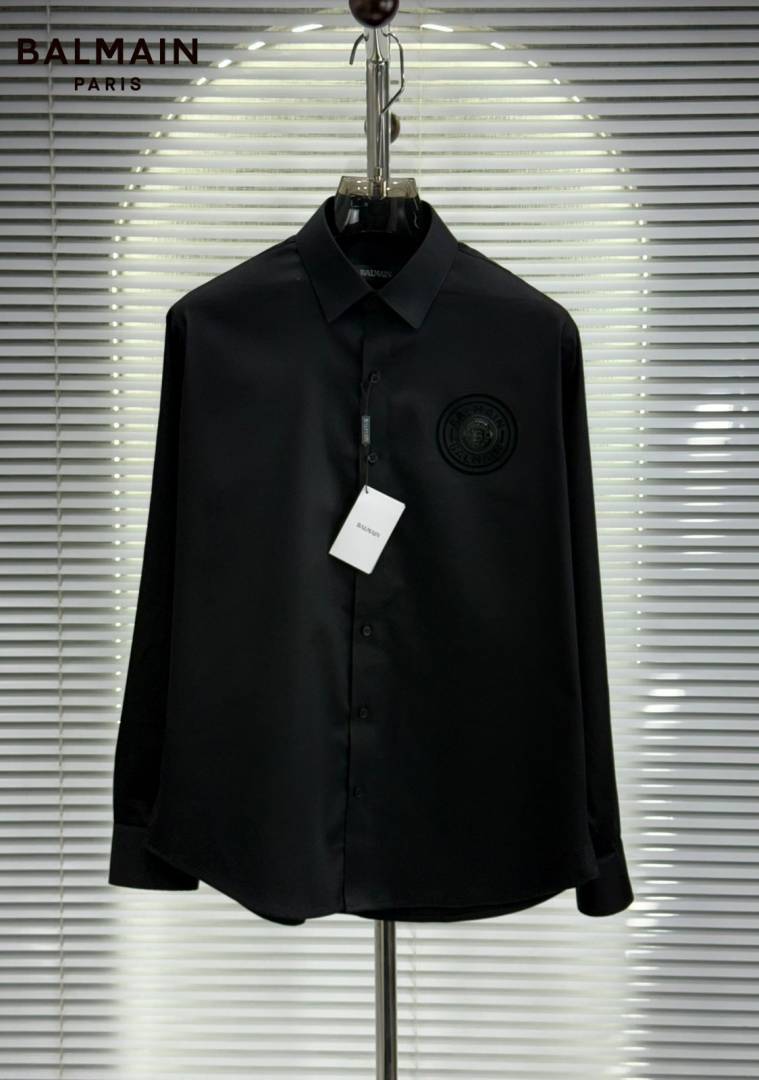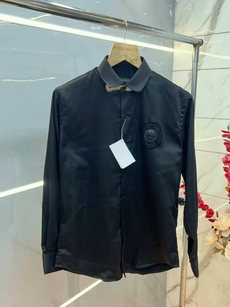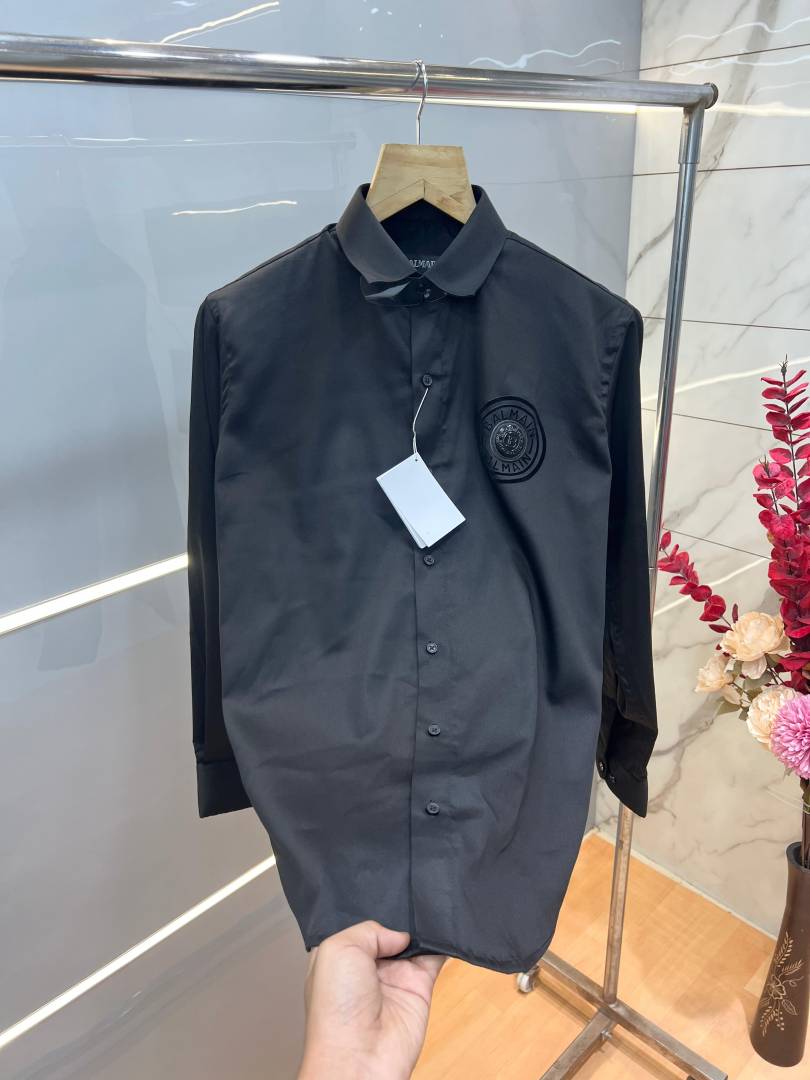 Balmai n Paris Black Premium Imported Cotton Lycra Fabric Metal Logo Shirt with Brand Box and Carry Bag 3812
