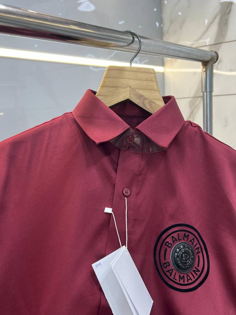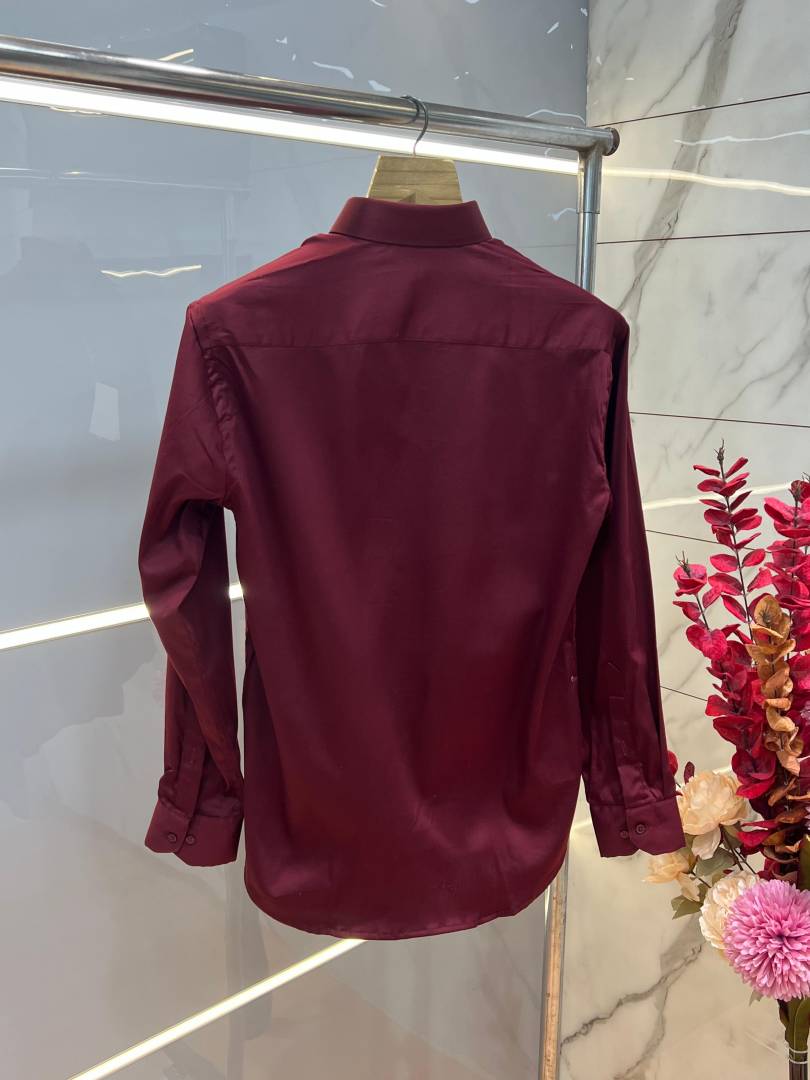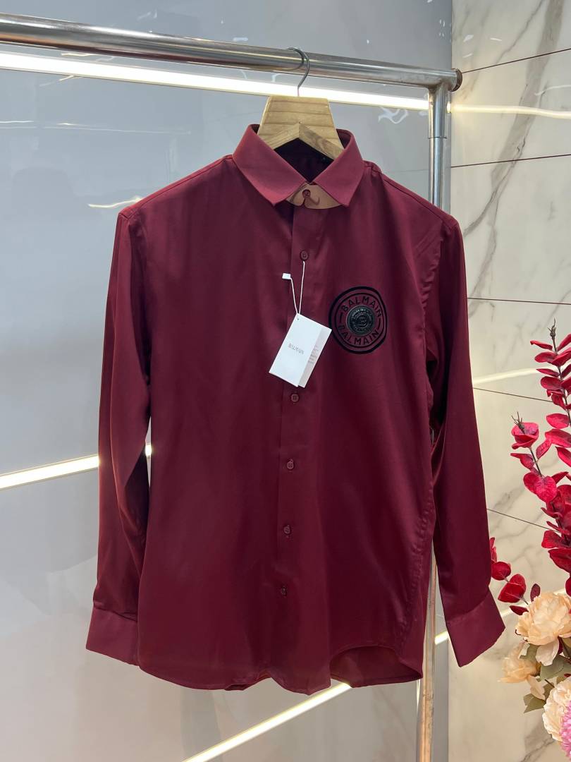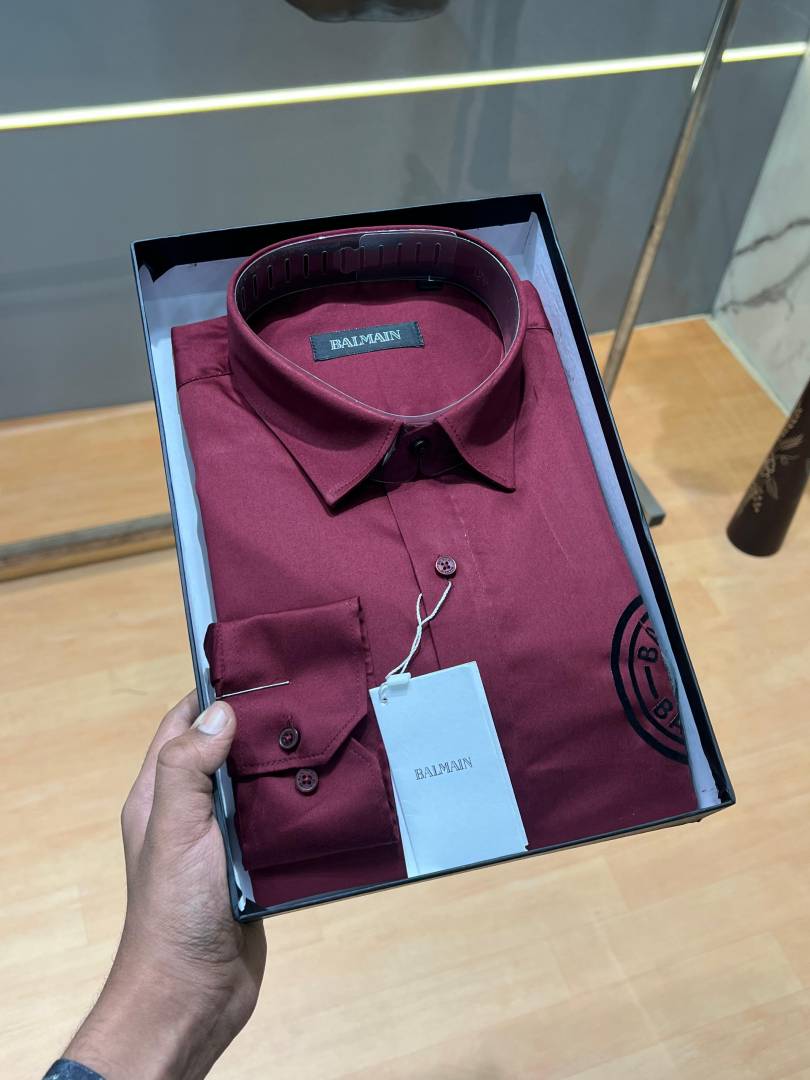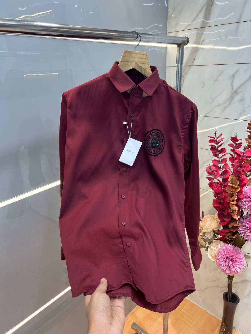 Balmai n Paris Maroon Premium Imported Cotton Lycra Fabric Metal Logo Shirt with Brand Box and Carry Bag 3809