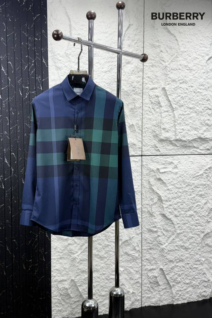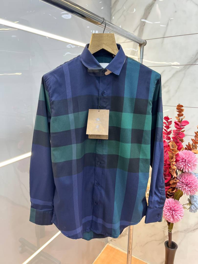 Burberr y Premium Imported Checks Shirt With custom Branded Button Tagging with Printed Design And Brand Packing 3803