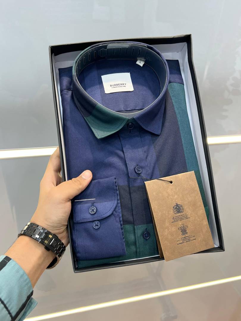 Burberr y Premium Imported Checks Shirt With custom Branded Button Tagging with Printed Design And Brand Packing 3804