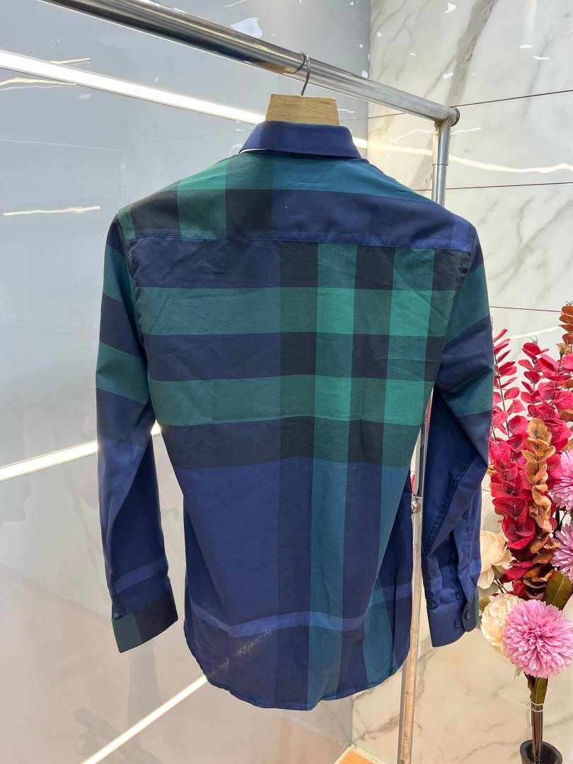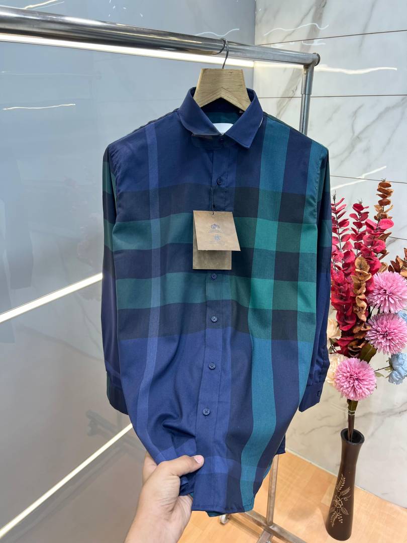 Burberr y Premium Imported Checks Shirt With custom Branded Button Tagging with Printed Design And Brand Packing 3808