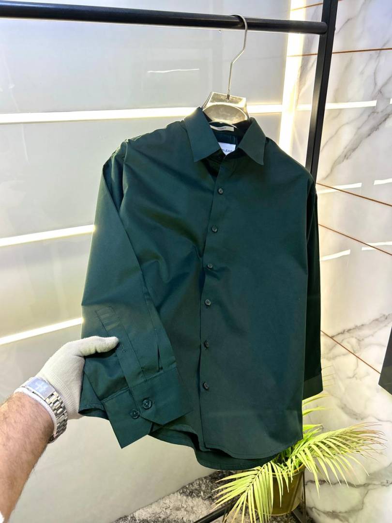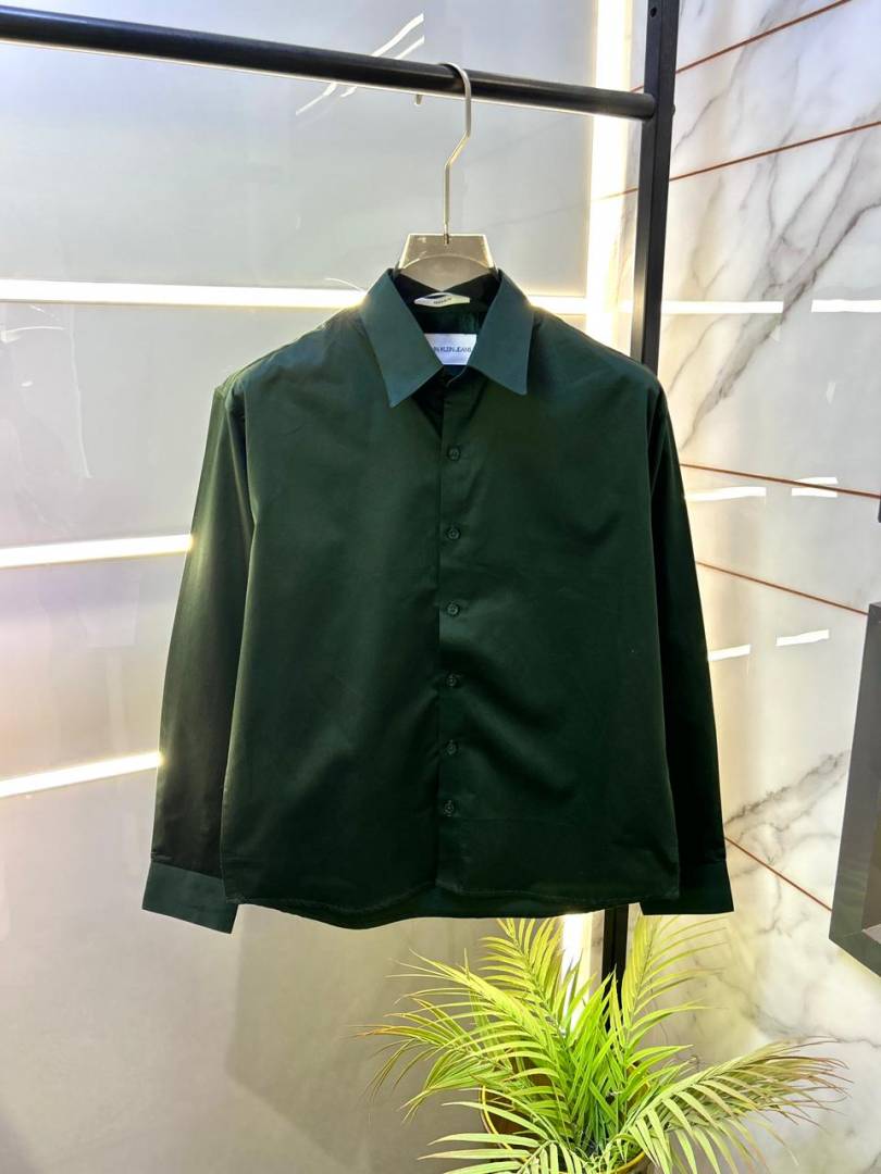 Calvin_Klein Dark Green Premium Oxford Lycra Shirts F2916-DGR