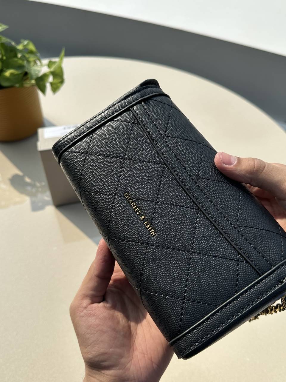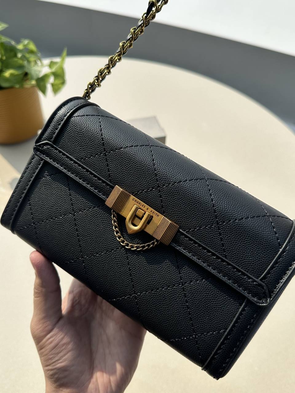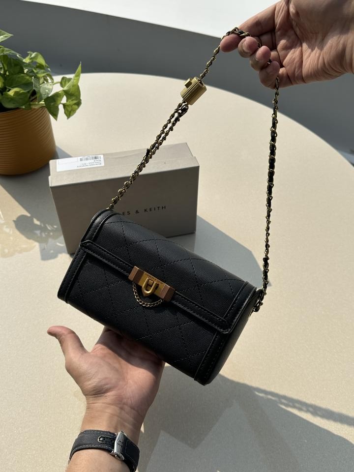 • CHARLES_AND_KEITH_TALLULAH_QUILTED_METALLIC_PUSH_LOCK_CLUTCH_WITH_OGBOX_CARDS_TAGS_DUSTBAG.