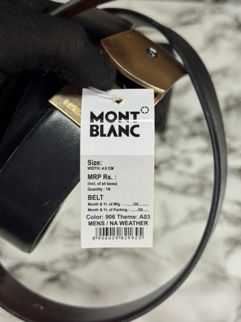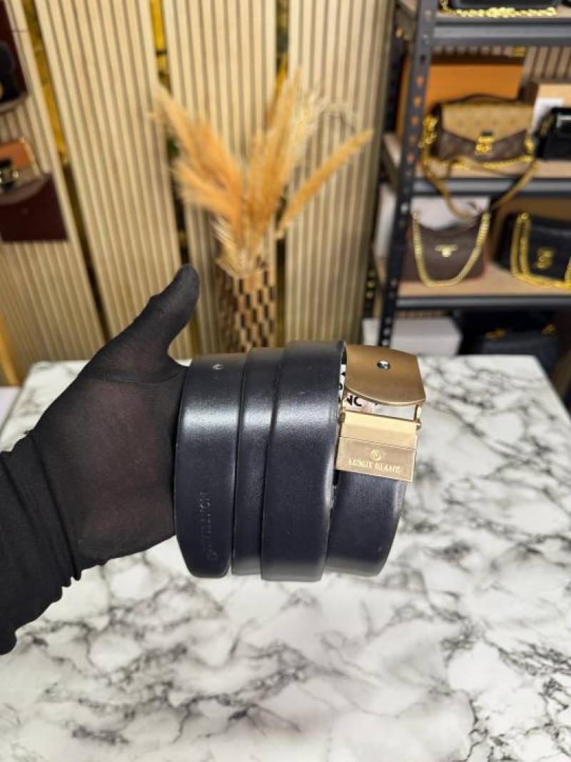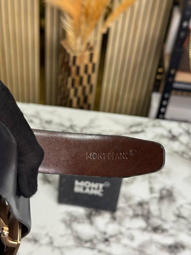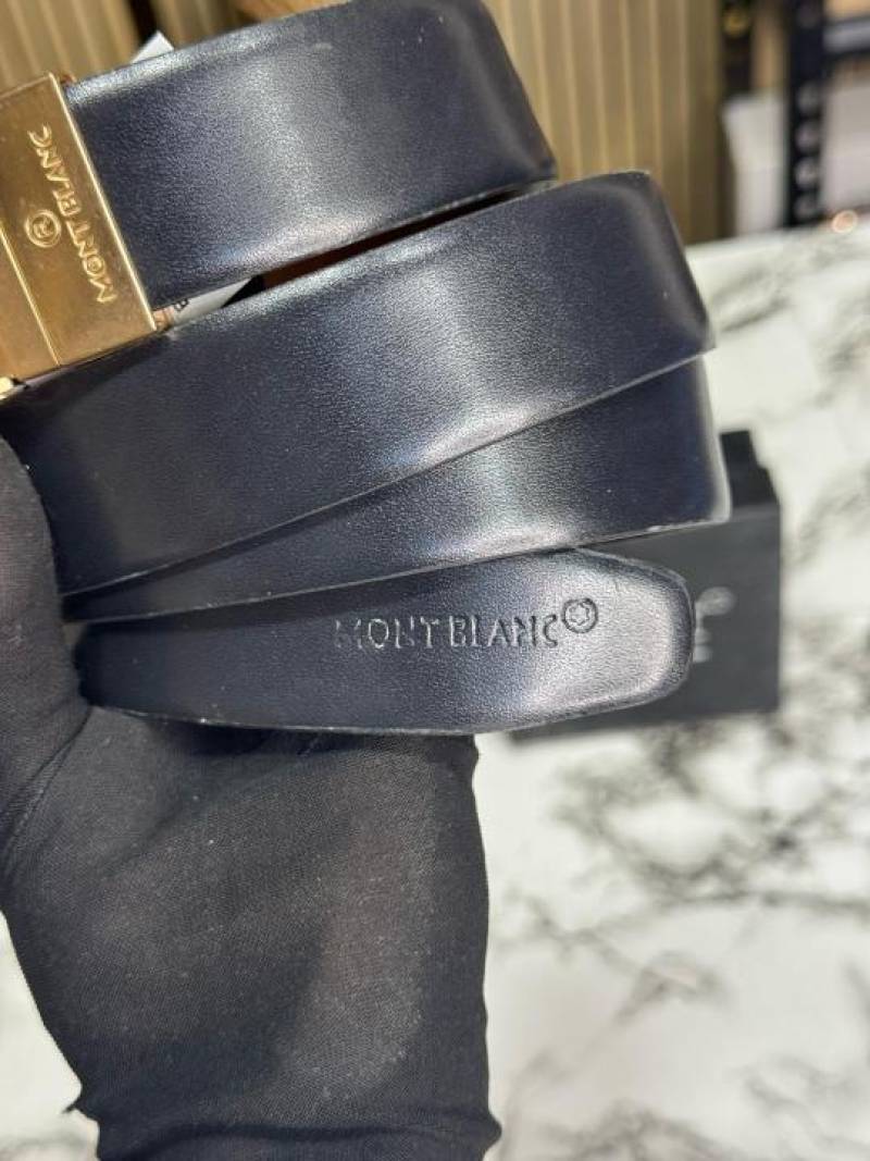 • Mont Blanc Black Leather Belt with Gold Signature Buckle Includes Box (M30)