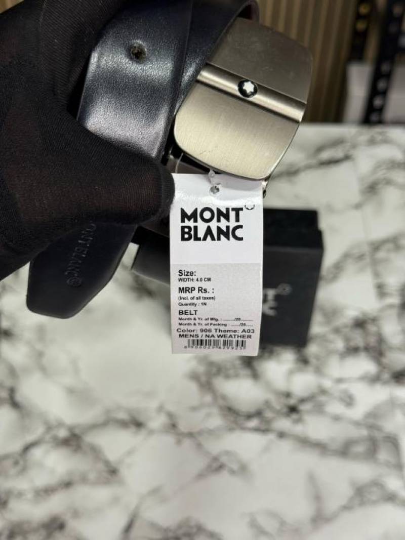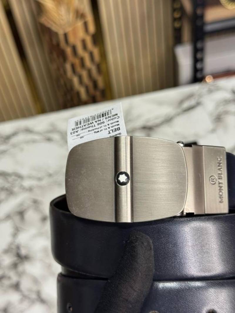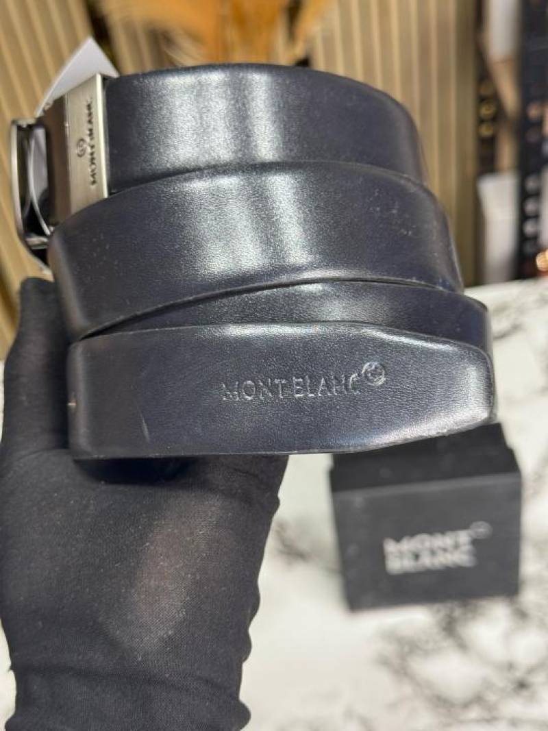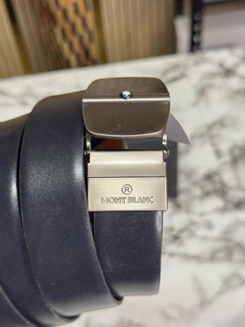 • Mont Blanc Black Leather Belt with Matte Silver Signature Buckle Includes Box (M29)