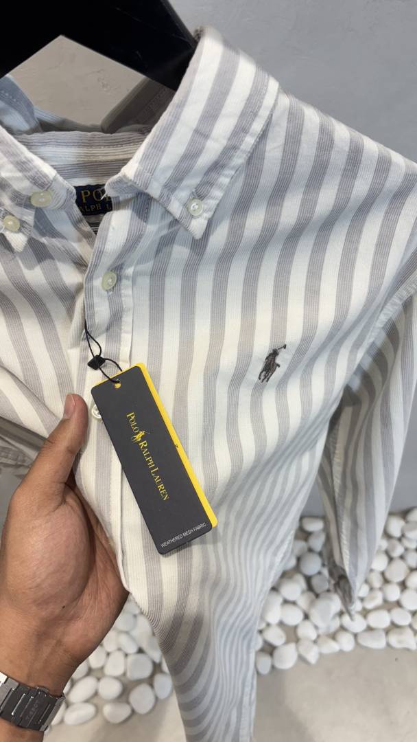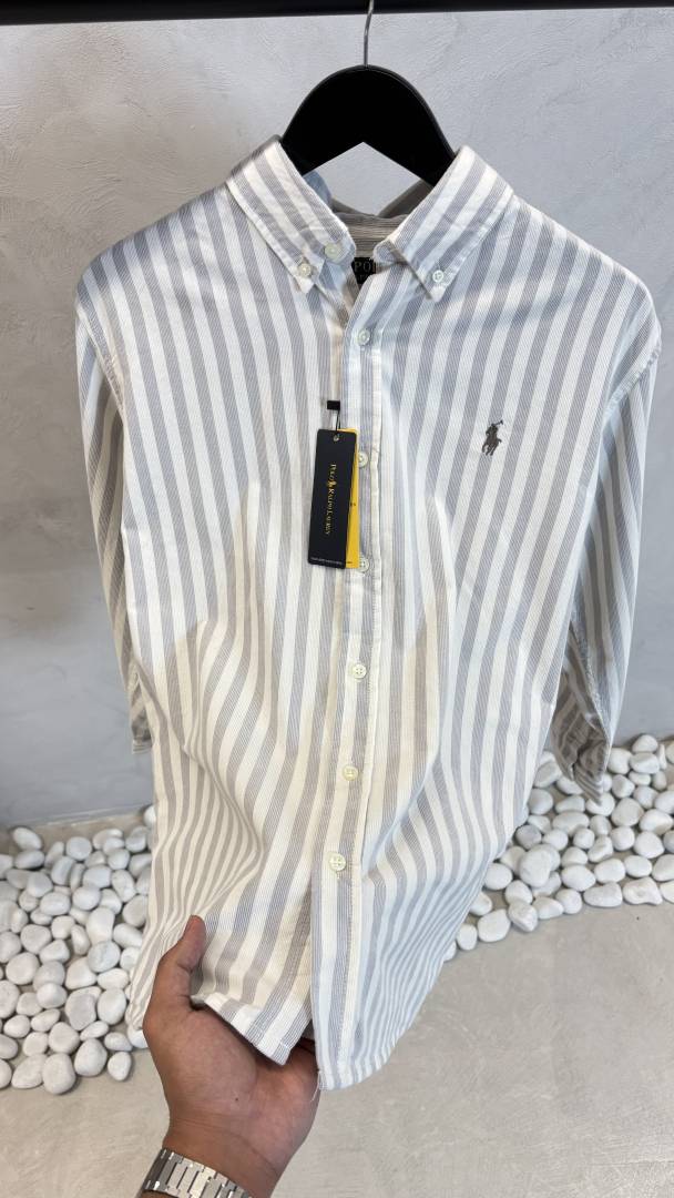 Ralph Laure_n Polo Grey & White Striped Shirt 1017